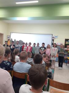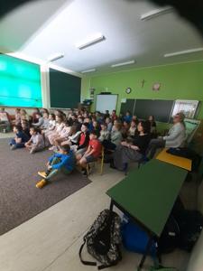 W dniu 30 maja 2025 roku dwukrotnie wystawiliśmy teatrzyk cieni. Na widowni zasiedli uczniowie klas I –III oraz sześciolatki. Ta forma przedstawienia baśni spotkała się z dużym zainteresowaniem. Uczniowie bardzo uważnie i w ogromnym skupieniu oglądali spektakl dostosowany do ich wieku .