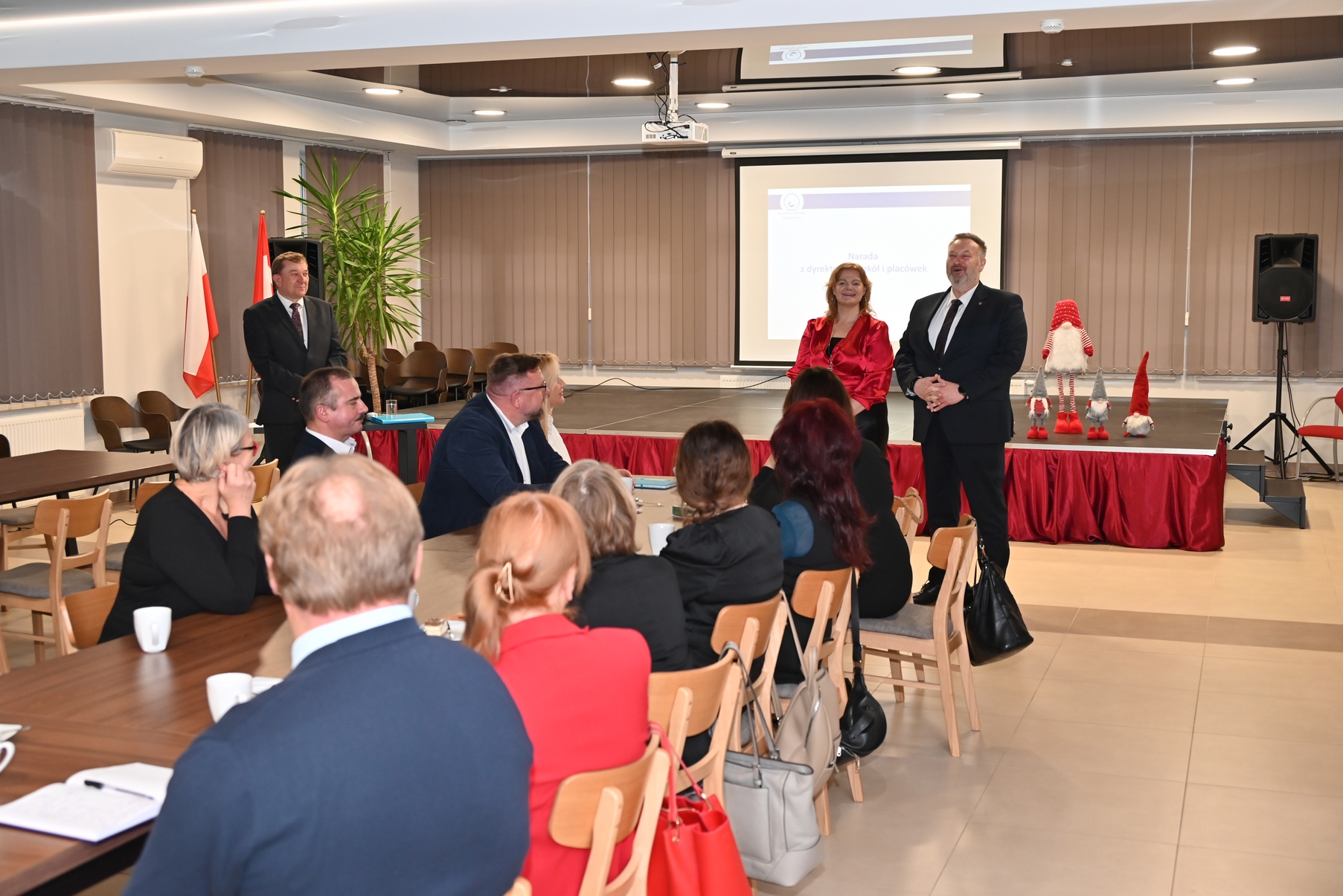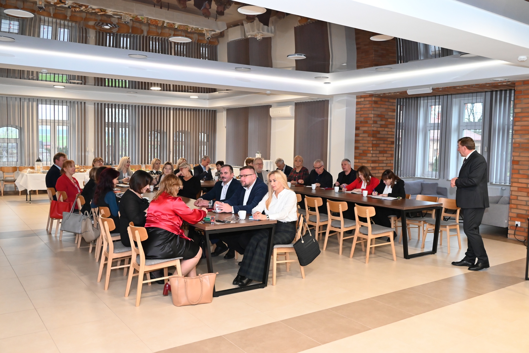 Po raz pierwszy w historii naszej szkoły mieliśmy zaszczyt gościć ponad dwudziestu dyrektorów szkół z łomżyńskiego rejonu wizytacyjnego starszego wizytatora Kuratorium Oświaty Delegatura w Łomży - Pana Witolda Gronostajskiego. Spotkanie zostało zorganizowanae w sali konferencyjnej Gminnego Centrum Kultury w Kobylinie-Borzymach. Wszystkich uczestników narady powitała dyrektor szkoły - Pani Grażyna Rzońca oraz Wójt Gminy Kobylin-Borzymy - Pan Dariusz Sikorski. Podczas spotkania omówione zostały kierunki realizacji polityki oświatowej państwa w roku szkolnym 2025/2026, wnioski z nadzoru pedagogicznego z poprzedniego roku szkolnego, wytyczne do arkuszy organizacji szkoły oraz zmiany w prawie oświatowym.