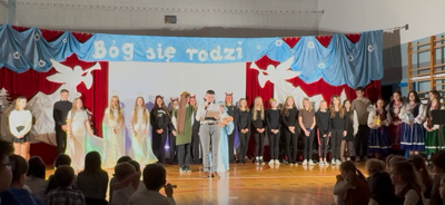 Tradycyjnie w naszej szkole 19 grudnia 2025 roku uczniowie zaprezentowali swoje umiejętności aktorskie podczas wystawienia Jasełek. Nowatorskie podejście reżyserów dostarczyło widzom niezapomnianych doznań podczas oglądania wspaniałego spektaklu. Zapraszamy do obejrzenia fotorelacji.
