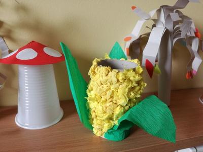 Piękne barwy jesienne powoli pokrywają otaczający nas świat. Czas w naszej świetlicy umilają nam prace plastyczne inspirowane tą piękną porą roku. Świetliki wykonywały nastrojowe drzewa, a z rolek oraz bibuły powstały kolby kukurydzy. Chłopcy zafascynowani rolnictwem zbudowali nawet krowę...