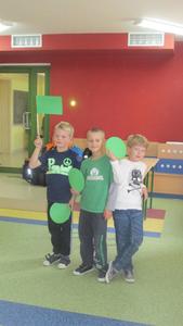 W dniu 01.10.2014 (środa) w świetlicy szkolnej odbyły się warsztaty z bezpieczeństwa w ruchu drogowym. Świetliki wzięły udział w zabawach edukacyjnych dotyczących prawidłowego poruszania się po jezdni. W tym dniu za dotknięciem czarodziejskiej różdżki zostali zamienieni w auta. Ich zadaniem była jazda po sali i stosowanie się do sygnalizacji świetlnych, znaków drogowych oraz reagowanie na sygnały nauczycieli, w wyniku, których wszystkie pojazdy musiały prawidłowo zaparkować w swojej bazie. Następnie podzieleni na dwie drużyny (dziewczęta kontra chłopcy) wzięli udział w zagadkach dotyczących przepisów drogowych. Zabawa zakończyła się remisem obu drużyn. Na zakończenie zajęć uczniowie wykonywali kolorowanki związane z tematem bezpieczeństwa. Wszyscy uczestnicy w nagrodę otrzymali medale wzorowego użytkownika ruchu drogowego.