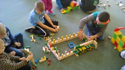 Zamki z wieżami, domy, ogrody oraz auta to budowle, jakie powstały w świetlicy. Prace te były efektem konkursu na najciekawszą budowlę wykonaną z klocków. Prace oceniane były pod kątem pomysłu, zgodności z tematem oraz wykonania.