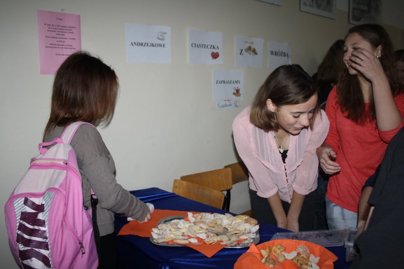 Wspaniałe wypieki zostały przygotowane przez uczniów klas I i II Gimnazjum oraz ich rodziców. Chętnych do delektowania się pysznymi ciasteczkami oraz do czytania wróżb o swej świetlanej przyszłości nie brakowało. Wszystkim andrzejkowy kiermasz sprawił dużo frajdy i radości.