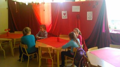W dniu 13 lutego 2015 (piątek) w świetlicy szkolnej miała miejsce „Walentynkowa kawiarenka dla zakochanych”. Wszyscy uczniowie mogli nabyć w tym dniu słodkie upominki dla swoich ukochanych. Każdy mógł skosztować smacznych pierników w kształcie serc, ciasta, walentynkowych lizaków oraz miło spędzić czas ze swoją sympatią przy stoliku dla zakochanych.