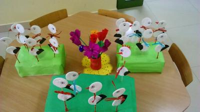 Świetliki przez kilka dni wykonywały bociany z płatków kosmetycznych i siały wiosenne zboża. Wszyscy miło spędzali czas, wykonując bociany, które uważane są za pierwsze zwiastuny wiosny. Przy okazji zasiewu zbóż odbyły się pogadanki na temat ich rozpoznawania po ziarnach oraz rozmowy na temat zbóż ozimych i jarych.