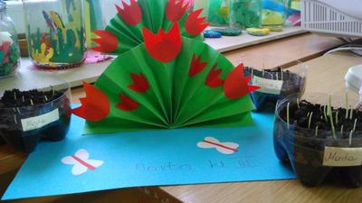 Przyjdź wiosno! Okrzyk o takiej treści był hasłem zajęć świetlicowych, którym towarzyszyły prace plastyczno - przyrodnicze.