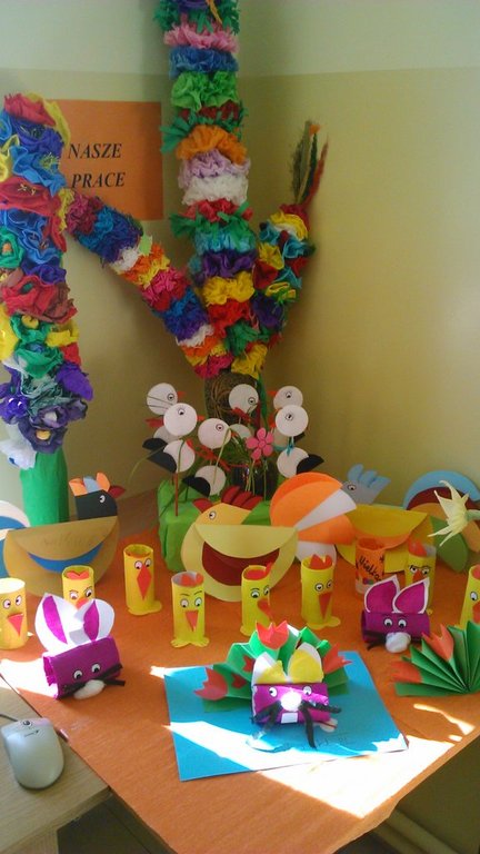 Wielkanoc zbliża się coraz szybciej, w związku z tym uczniowie przebywający w naszej świetlicy szkolnej już od jakiegoś czasu wykonywali różne ozdoby z tym związane. Świetliki przygotowały wystawę ozdób wielkanocnych. Podziwiać można gigantyczną pisankę wykonaną z recyklingu, kurczaczki, koszyczki, palmy, zajączki, baranki wykonane różnymi technikami.