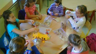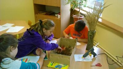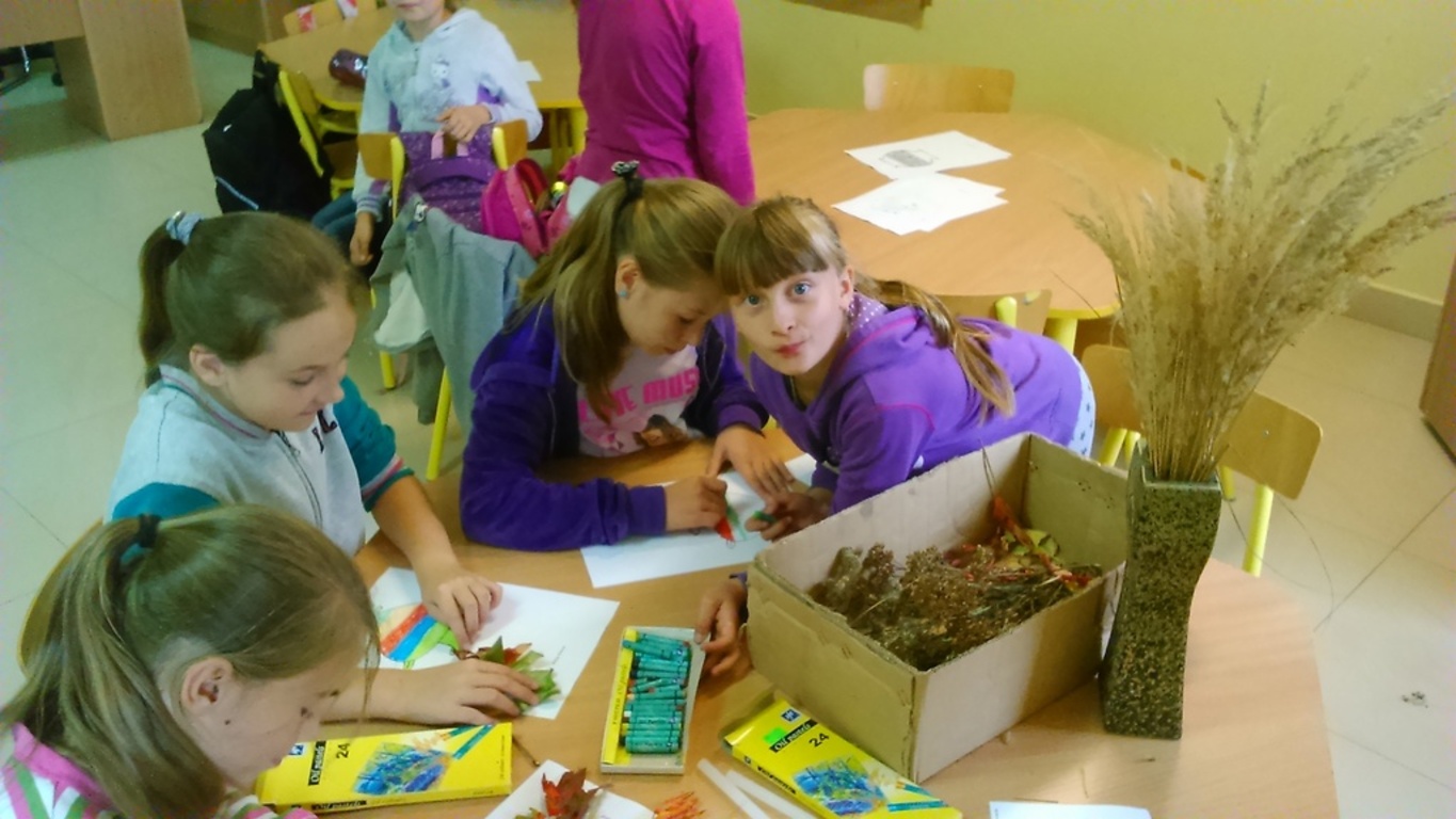 W słoneczne poniedziałkowe przedpołudnie 21 września Świetliki po wakacyjnej przerwie rozpoczęły swoje prace od projektowania jesiennych wazonów z liści, suchych traw oraz jarzębiny.
