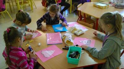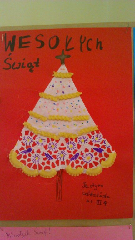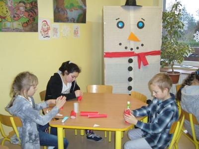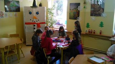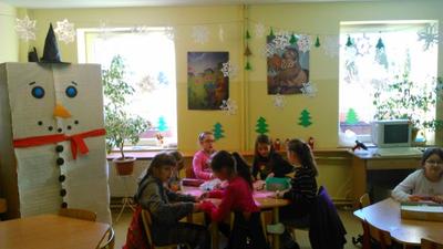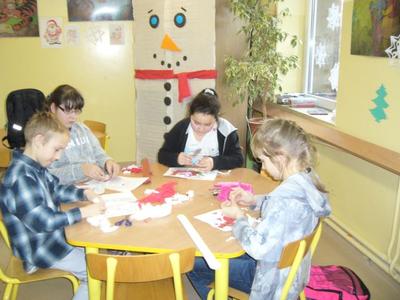 Na świetlicy od miesiąca trwają przygotowania do Świąt Bożego Narodzenia. Dzieci wspólnie przygotowują ozdoby świąteczne, kartki oraz inne dekoracje. W pracę włączają się prawie wszyscy, nawet najmłodsi uczniowie. Największym powodzeniem cieszą się kartki świąteczne oraz ozdoby dekorowane „błyskotkami”.