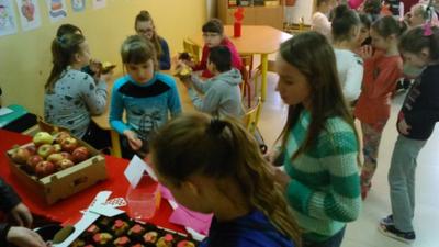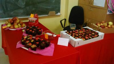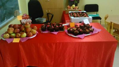 Łakocie, w postaci mufinek cieszyły się wielkim zainteresowaniem wśród uczniów i pracowników naszej szkoły. Czas upływał wyjątkowo miło. Uczniowie mieli okazję miło spędzić czas przy udekorowanych kawiarnianych stolikach w rytmie muzyki dla zakochanych.