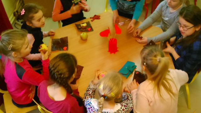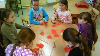 15 lutego świetlica zamieniła się w Kawiarenkę walentynkową. Przez cały tydzień Świetliki przygotowywali się to tego święta. Tworzyli i wypisywali kartki walentynkowe, dekorowali salę świetlicy szkolnej.