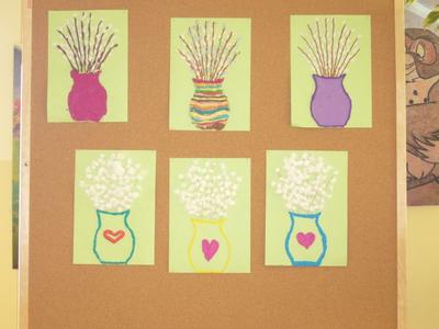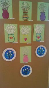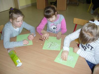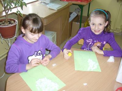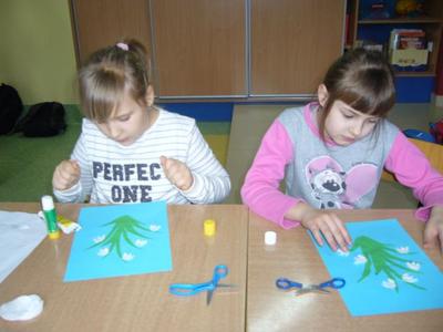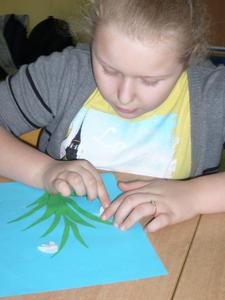 W naszej świetlicy pojawiły się już pierwsze kwiaty zwiastujące wiosnę. Dzieci wykonywały przebiśniegi z wykorzystaniem wacików kosmetycznych oraz bazie w wazonie z plasteliny i waty.