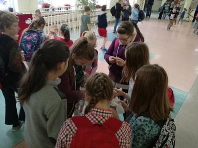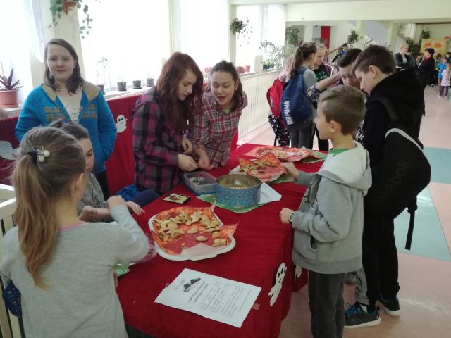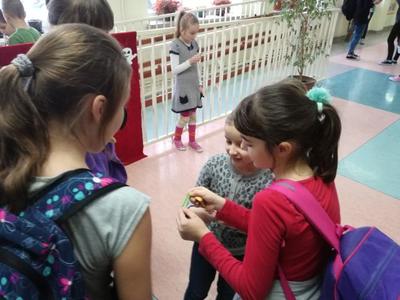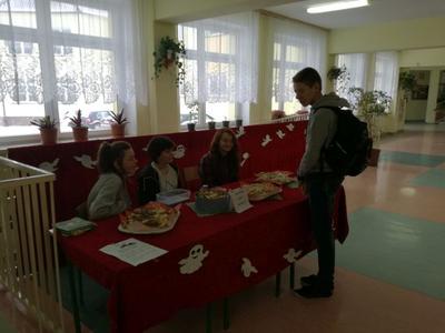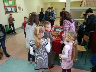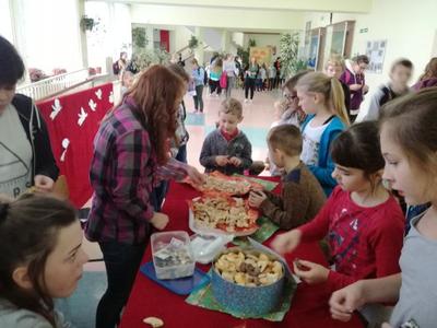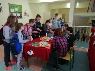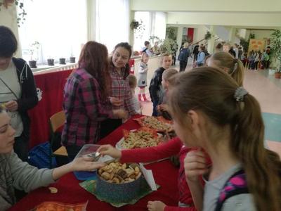 Na długich przerwach uczniowie mogli również za symboliczną cenę zakupić ciasteczko z wróżbę, które przygotowali uczniowie gimnazjum i ich mamy.