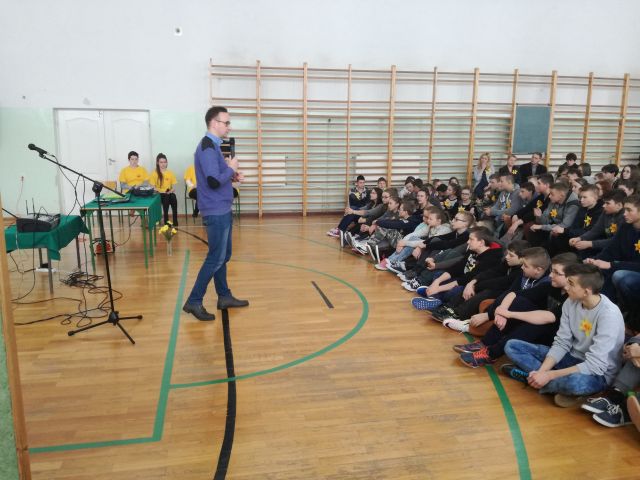 Na spotkanie naszych gości uczniowie z koła wolontariatu szkolnego przygotowali dla całej szkoły papierowe kotyliony z żonkili. Symbolem akcji jest żonkil – kwiat wiosny, kwiat nadziei na nowe życie. Zapraszamy do galerii zdjęć a naszym gościom dziękujemy za udzielenie cennych lekcji.