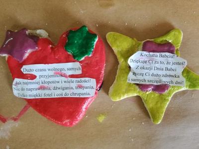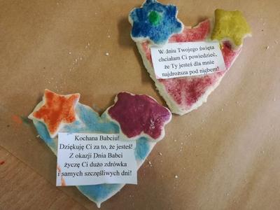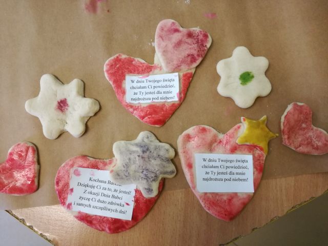Świetliki rozpoczęły przygotowania do Dnia Babci i Dziadka. Podczas zajęć świetlicowych wykonane zostały serduszka z masy solnej, pięknie ozdobione z życzeniami. Wszystko w podziękowaniu dla Babć i Dziadków za ich miłość, dobroć, cierpliwość i serce.