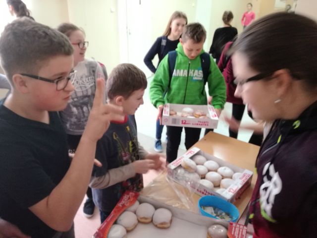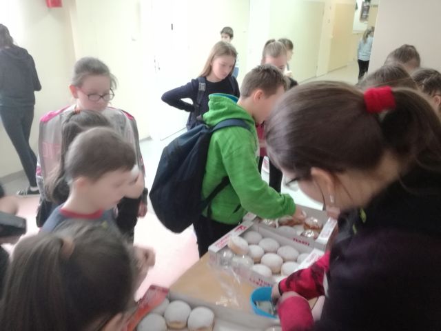 W dniu 08.02.2018 r. wszyscy uczniowie naszej szkoły mieli możliwość zakupienia  za symboliczną złotówkę pączka, a tym samym wesprzeć świetlicę szkolną.