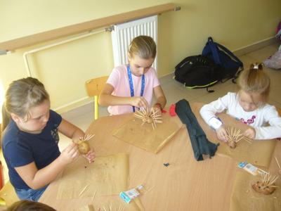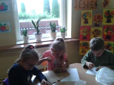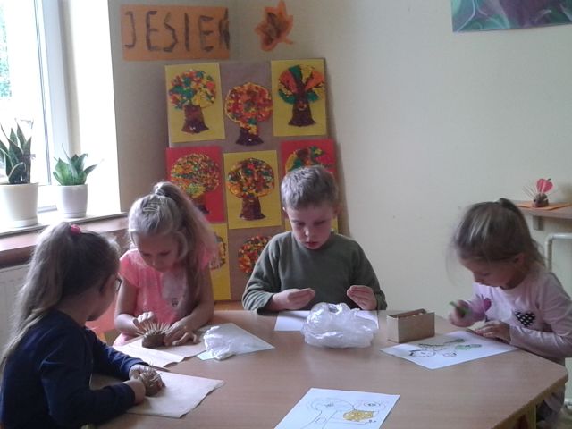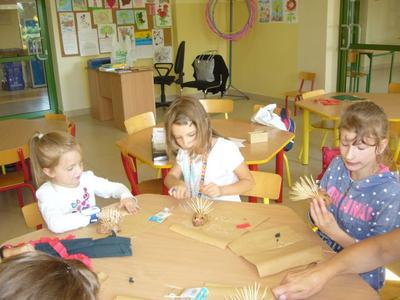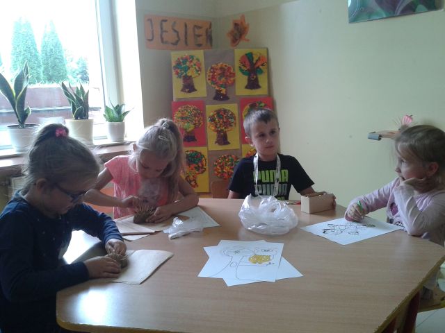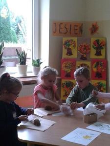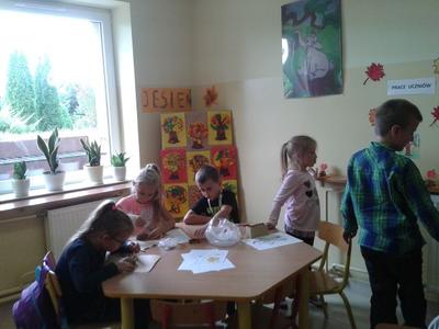 W świetlicy na dobre zagościła już Pani Jesień. Dzieci wpuściły ją i zaprosiły do wspólnej zabawy. Przy wykorzystaniu różnorakich darów tej pory roku powstały przepiękne prace plastyczne i elementy do dekoracji sal, między innymi: jesienne jeże, drzewa z kolorowymi liśćmi, grzyby, wiewiórki, itp... Świetliki miały okazję poznać różne techniki plastyczne, dzięki którym mogły wyeksponować urodę jesieni oraz wykazać się pomysłowością i talentem.