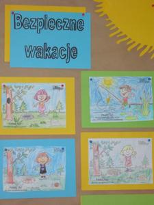 W oczekiwaniu na lato i wakacje na zajęciach świetlicowych dużo rozmawialiśmy o bezpieczeństwie podczas letniego wypoczynku. Świetliki wykonały też prace plastyczne dotyczące bezpieczeństwa podczas wakacji. A że wakacje zbliżają się dużymi krokami, więc zaangażowanie dzieci było też duże. Prace uczniów zostały wyeksponowane w salach świetlicy.