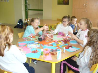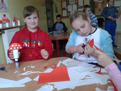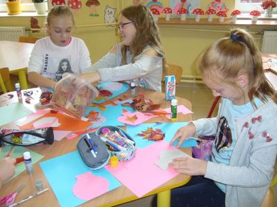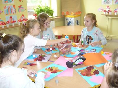 Październik to miesiąc, w którym piękne barwy jesienne powoli pokrywają otaczający nas świat. Czas w naszej świetlicy umilały nam prace plastyczne inspirowane tą piękną porą roku. Dzieci zbierały liście, kasztany, żołędzie i inne dary jesieni. Zadziwiające jak wiele można zrobić z zebranych darów. Kreatywność naszych dzieci jest pełna podziwu. Na świetlicowym parapecie powstało „kasztanowe zoo”. Ściany pokryły prace plastyczne inspirowane pomysłami dzieci. Z liści powstały jesienne bukiety, a z rolek i kolorowych kartek grzybki muchomorki. Wyglądają prawie jak żywe. Oprócz zajęć plastycznych i technicznych Świetliki miały czas na zabawę, gry w/g zainteresowań oraz zajęcia w ramach nauki własnej.