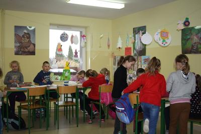 Dnia 6 grudnia w świetlicy odbyły się zajęcia plastyczne. Ich celem było wykonanie ozdób świątecznych. Przy dźwiękach kolęd, w miłej atmosferze, powstawały bombki różnej wielkości, pocztówki, łańcuchy, stroiki i różnorodne ozdoby choinkowe. Z wielkim zaangażowaniem nauczyciele i uczniowie pracowali wspólnie, wytrwale i efektownie. Powstałe prace ozdobiły ściany świetlicy.