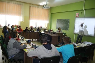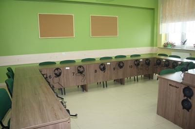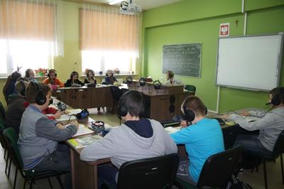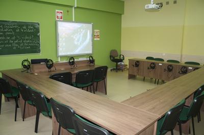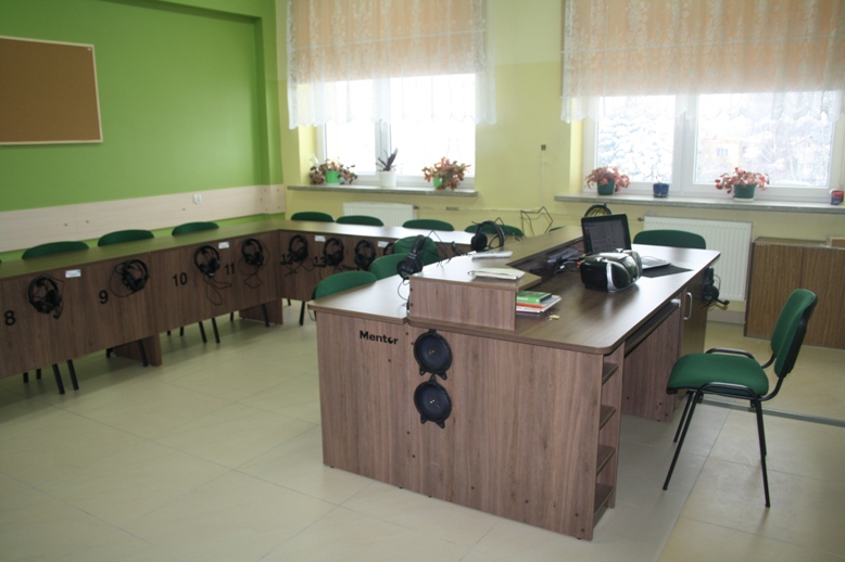 Przystepując do projektu otrzymaliśmy pracownię językową na miarę XXI wieku. Uczniowie pracując w grupach mogą komunikować się bezpośrednio z nauczycielem. Stanowiska uczniowskie wyposażone są w słuchawki i mikrofony, więc każdy uczeń indywidualnie rozmawia z prowadzącym zajęcia. Jest równiez możliwa praca w parach, którą cały czas kontroluje nauczyciel.