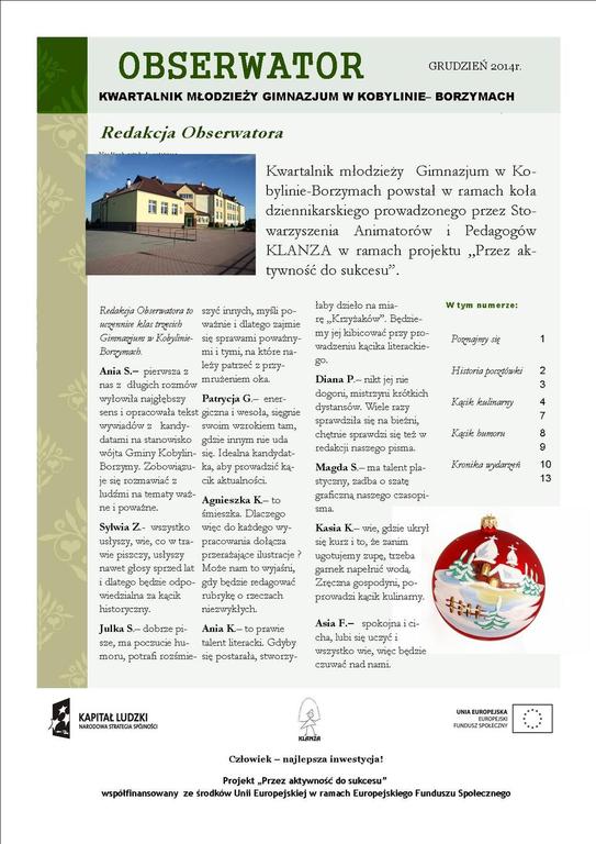 15 grudnia 2014 17:15 | Projekt pt.: "Przez aktywność do sukcesu" (nr POKL.09.01.02-20-955/13) współfinansowany ze środków Unii Europejskiej w ramach Europejskiego Funduszu Społecznego.