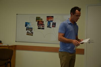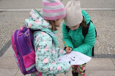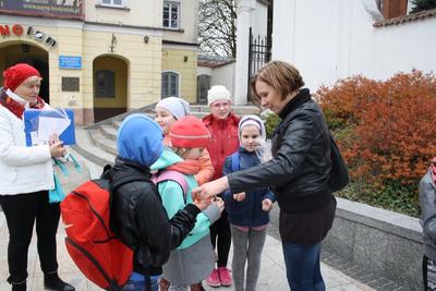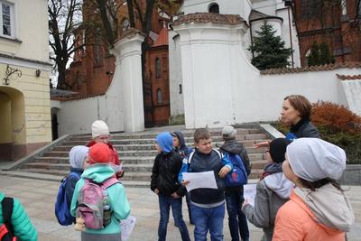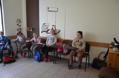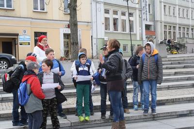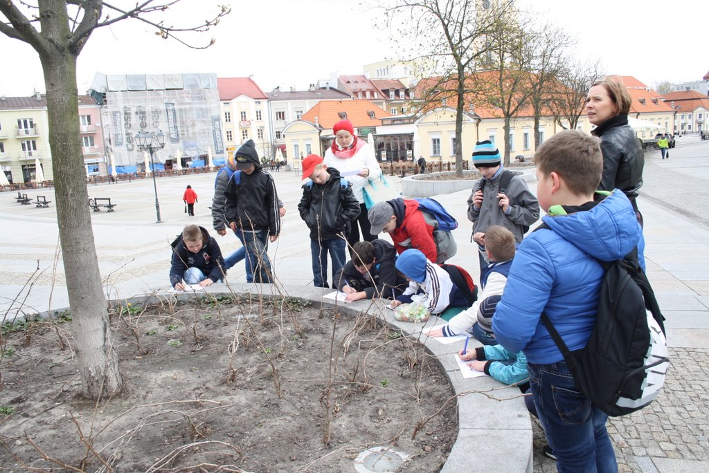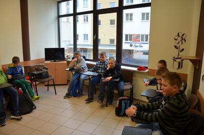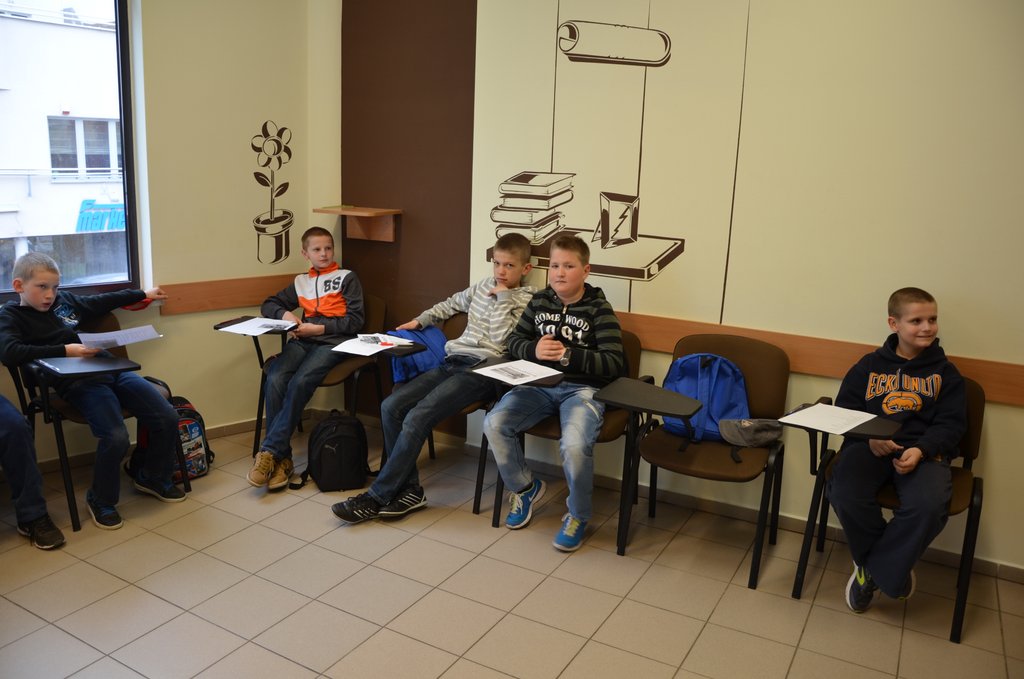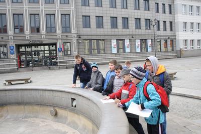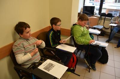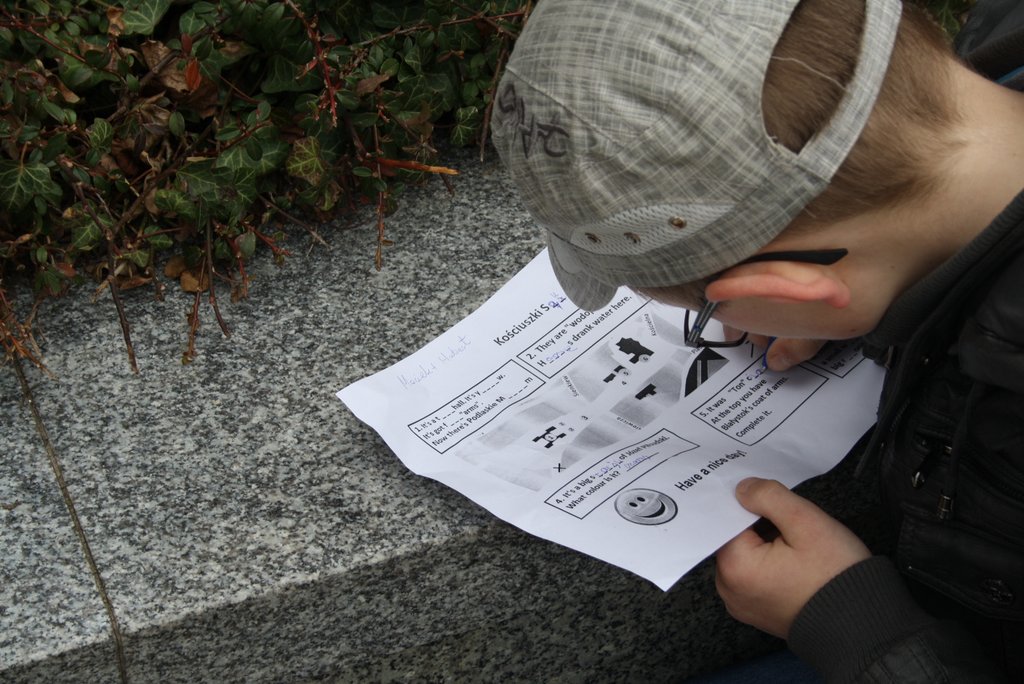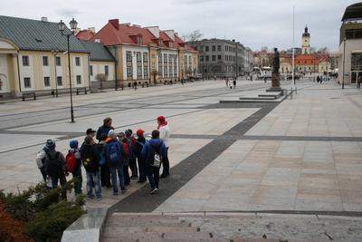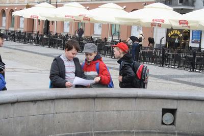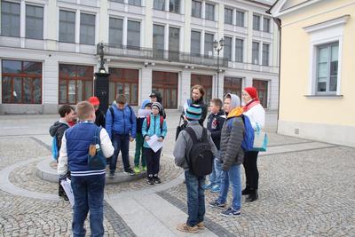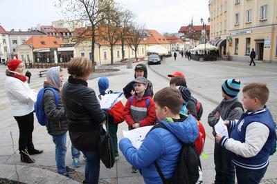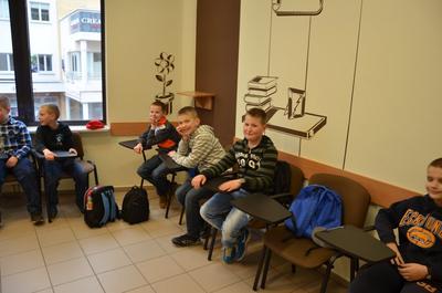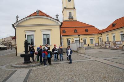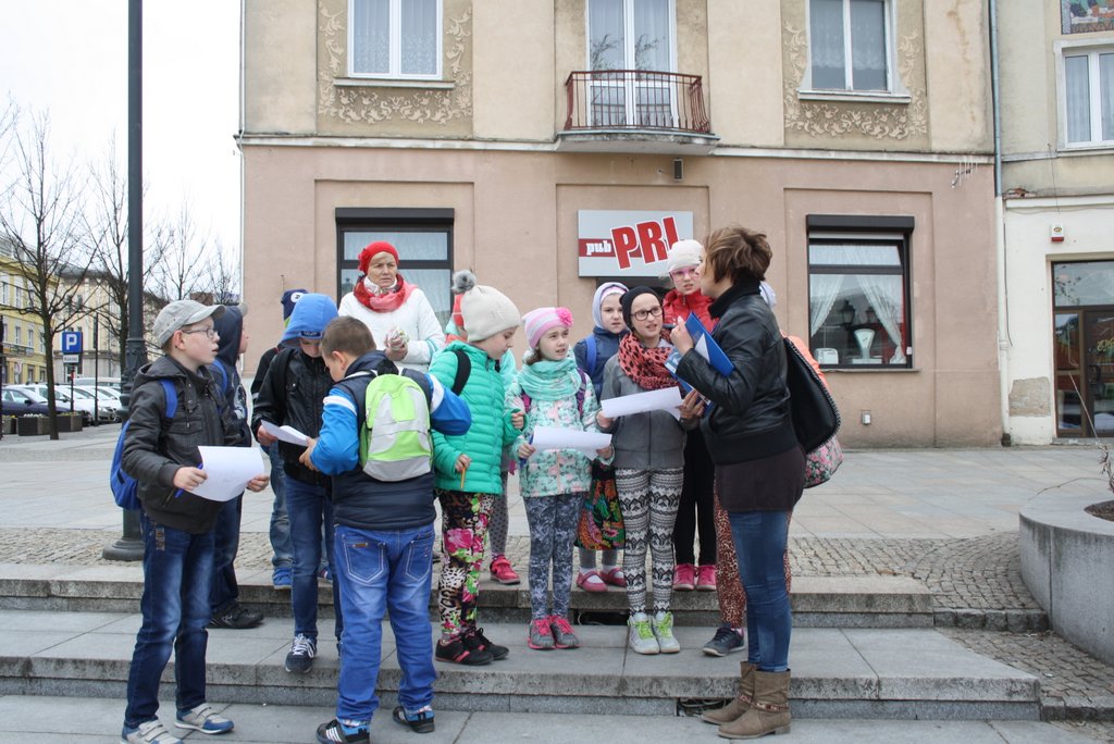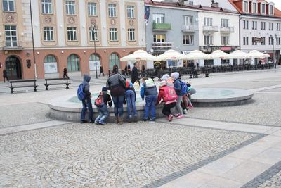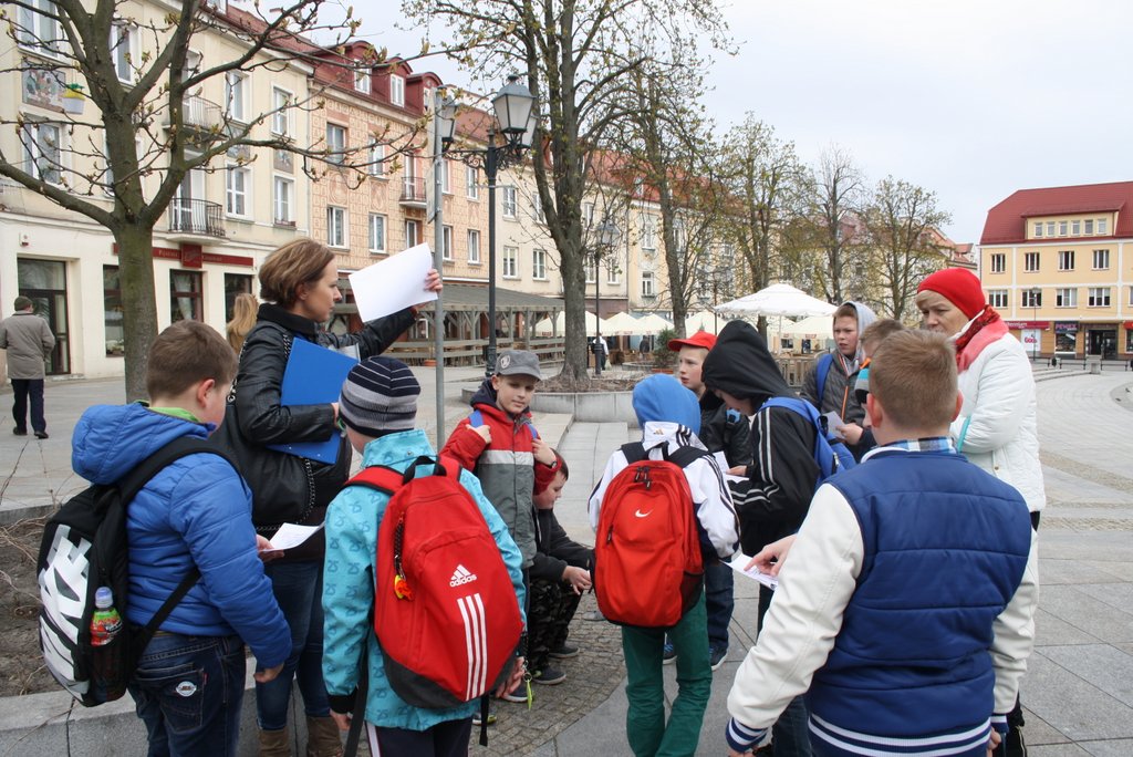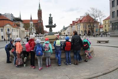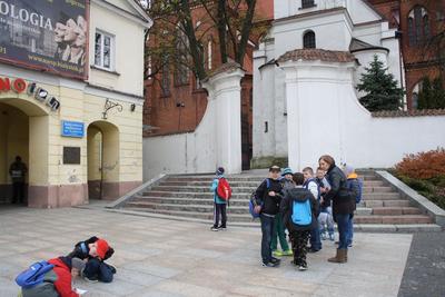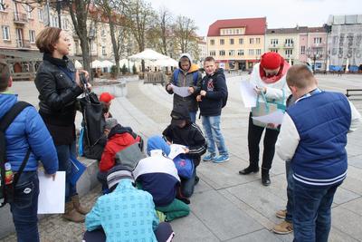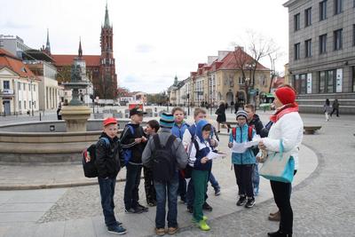 W ramach projektu "Okno na świat" klasa III wraz z paniami Stefanią Dąbrowską, Sylwią Bućko i Mirosławą Zdrodowską wybrała się na jeden dzień do Białegostoku. Celem wyprawy była lekcja j. angielskiego z Amerykaninem oraz gra miejska w centrum miasta. Będąc u celu, podzieliliśmy się na dwie grupy. Jedna część kasy udała się do szkoły językowej Homeschool, drugą przejęła pani Ania Kraśnicka, przewodniczka z Regionalnego Oddziału PTTK w Białymstoku. Lekcję w szkole przeprowadził z nami Patrick, z którym uczniowie nie mogli za bardzo porozmawiać po polsku :) Patrick pokazał nam miejsca w USA, w których kiedyś mieszkał, zadał trochę pytań po angielsku oraz krótko przedstawił najważniejsze miejsca spotykane w mieście. Druga grupa w tym czasie szukała na Rynku Kościuszki miejsc oznaczonych na mapie i uzupełniała krótkie teksty w j. angielskim. Były też nagrody ;) Po godzinie grupy się wymieniły. Na zdjęciach widać, jak wszyscy pilnie pracowali!
