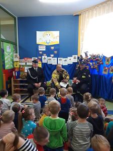 Wizyta strażaków z OSP w Kobyliie-Borzymach w naszym przedszkolu wzbudziła ogromne zainteresowanie dzieci. Nasze Misiowe spotkanie rozpoczęło się przeczytaniem przez pana strażaka opowiadania z książki pt. "Świat w piżamie".