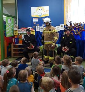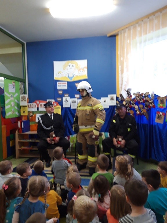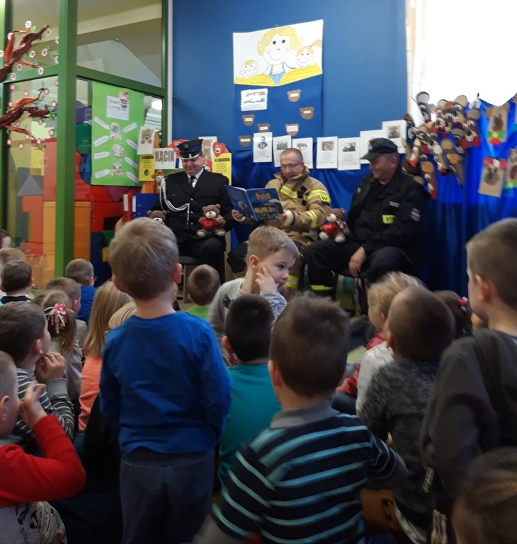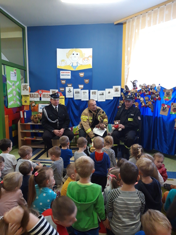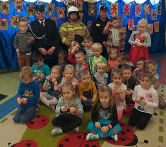 Przedszkolaki dowiedziały się, że praca strażaka nie polega tylko na gaszeniu pożarów, ale również na udzielaniu pomocy ludziom podczas powodzi, katastrofy budowlanej i wypadków samochodowych. Dzieci utrwaliły numery alarmowe. Cenną wskazówką była informacja, jak dbać o bezpieczeństwo własne i innych osób oraz w jaki sposób przewidywać i unikać zagrożeń podczas wspólnych zabaw z rówieśnikami.