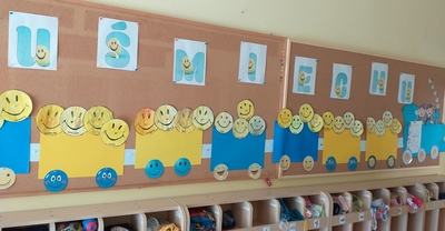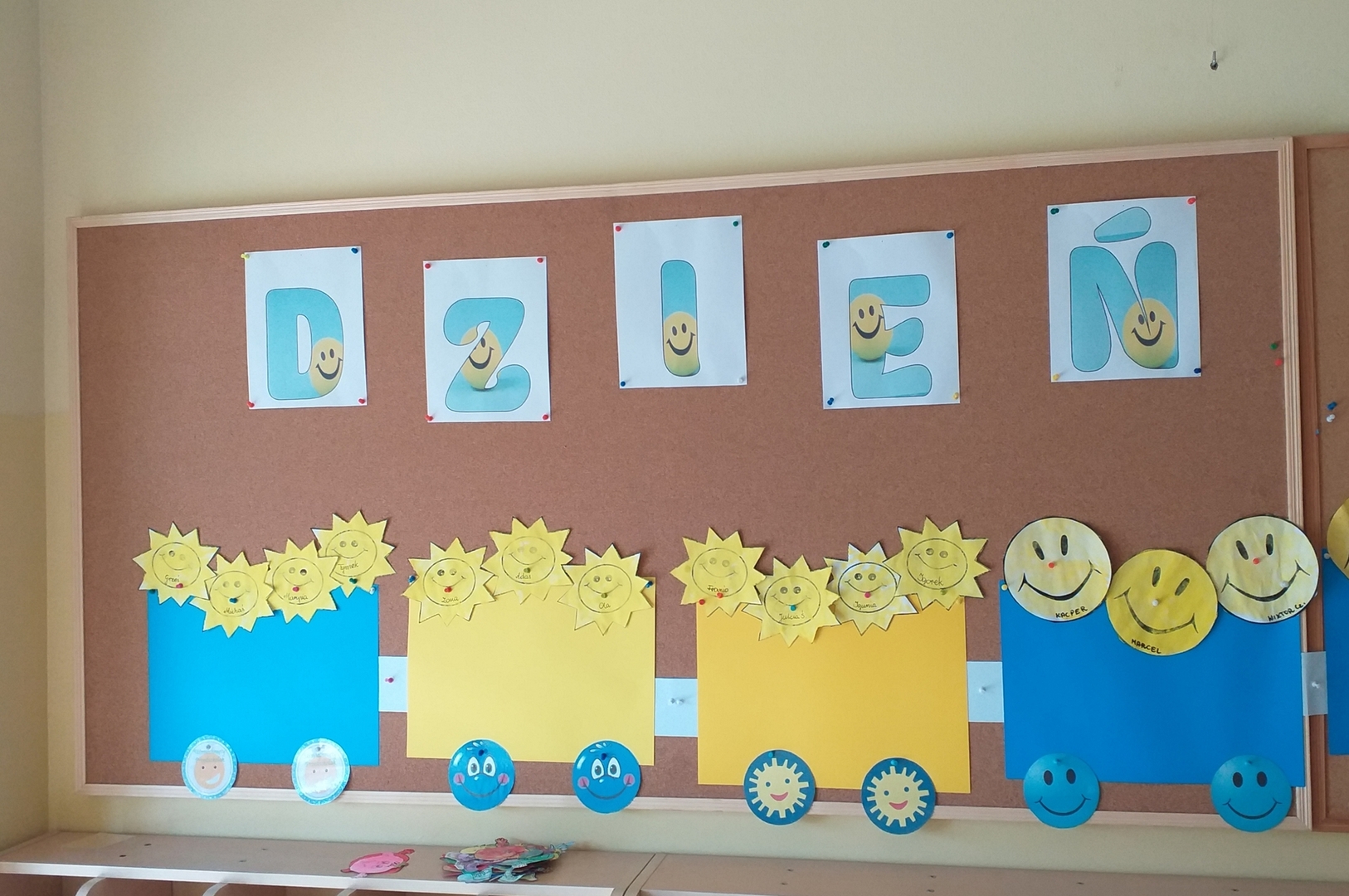 W tym dniu Przedszkole zamieniło się w żółtą, magiczną pełną szczęścia krainę, każdy rodzic przyprowadzający dziecko zabierał ze sobą uśmiech (na drzwiach szatni znajdował się plakat "Weź ze sobą uśmiech- za darmo" z naklejkami.