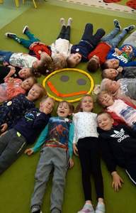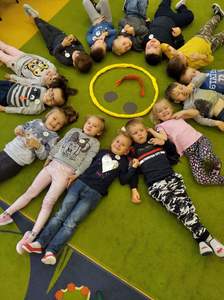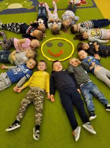 Przedszkolaki starały się przez cały dzień utrzymać wspaniały humor i uśmiech na twarzy. Tym uśmiechem zarażały innych i odznaczały uśmiechniętą buźką -Dobry humor dzisiaj mamy, więc uśmiechy przesyłamy.