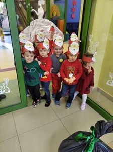 W poniedziałek 7 grudnia nasze przedszkolaki wyglądały jak małe Mikołaje, ponieważ wszystkie były wyjątkowo ubrane - czerwono i "mikołajkowo". Od rana w przedszkolu panowała radość, dzieci oczekiwały na przyjście niezwykłego gościa.