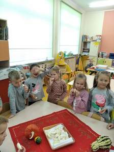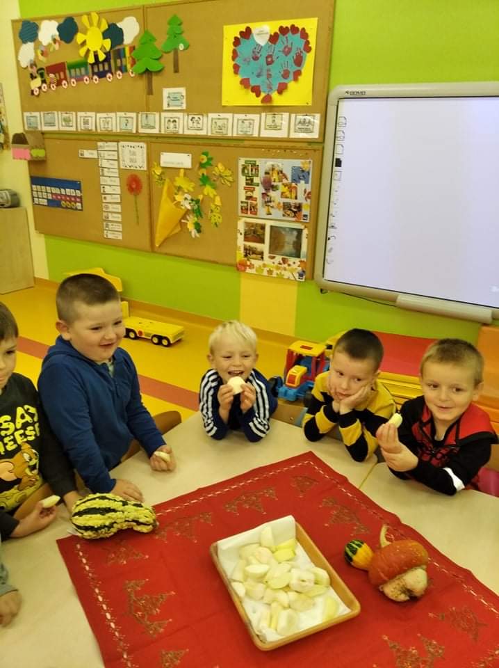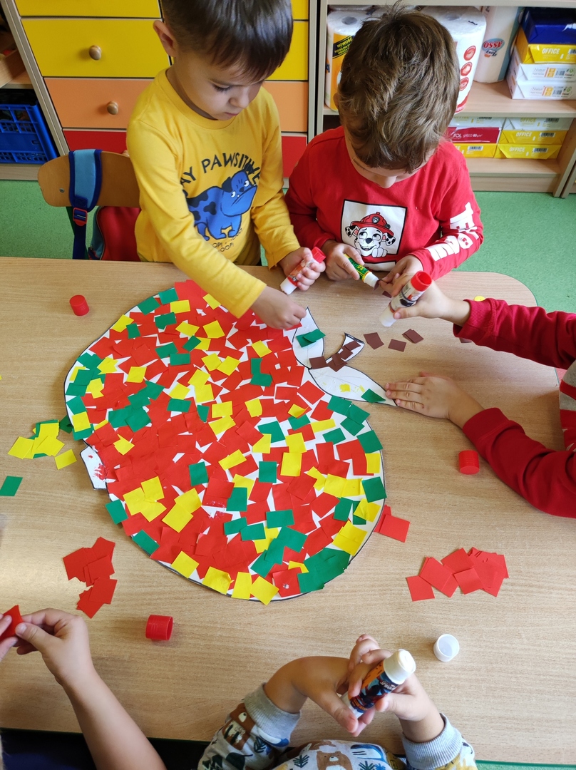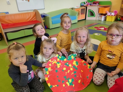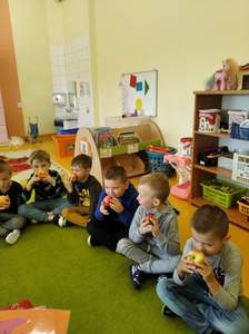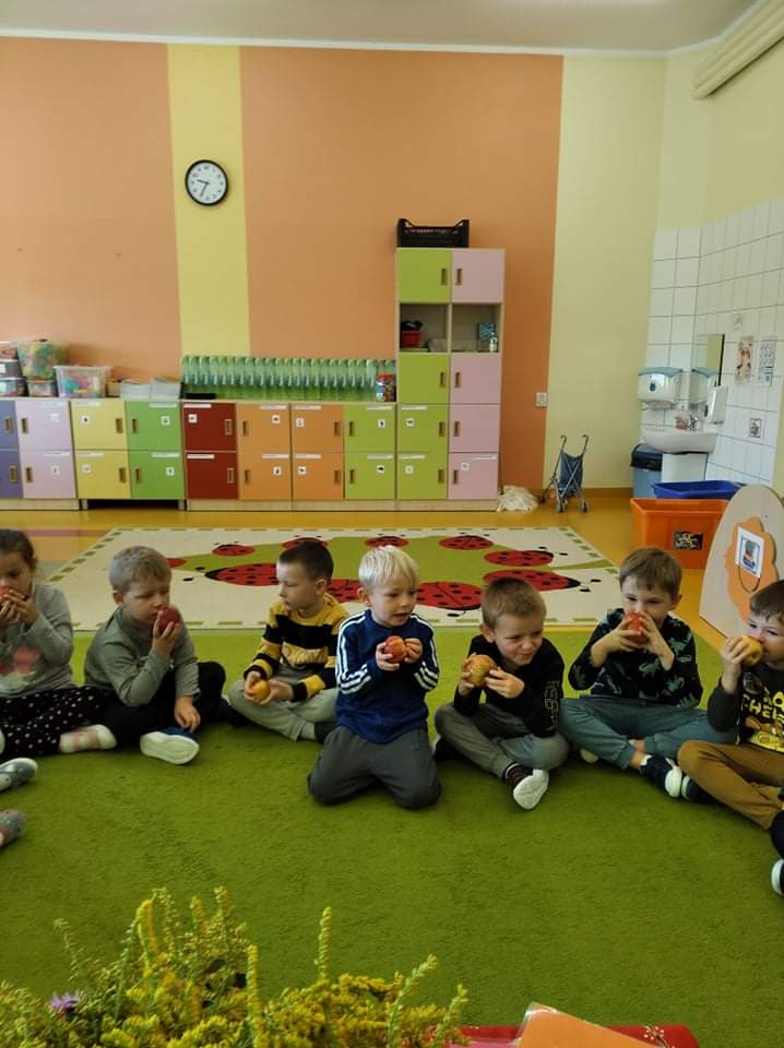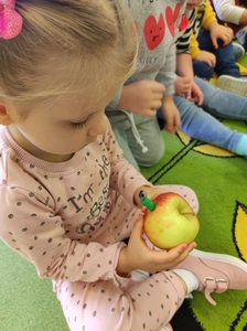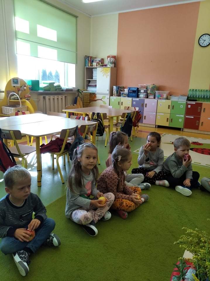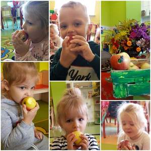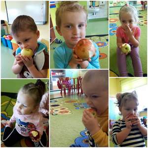 W naszym przedszkolu 28 września obchodziliśmy Dzień Jabłka:) W tym dniu przedszkolaki poznały różne gatunki jabłek, rozpoznawały zapach i smak tych owoców. Ponadto przedszkolaki rozwiązywały zagadki, słuchały wierszy i piosenek o jabłkach. Nie zabrakło też zabaw ruchowych, które dowiodły, że jabłko oprócz swoich cennych walorów smakowych może posłużyć jako inspiracja do wielu konkursów. Po emocjach związanych z zabawą najbardziej oczekiwanym punktem dnia był jabłkowy poczęstunek :) Następnie dzieci ze wszystkich grup przystąpiły do wykonania prac plastycznych przedstawiających jabłko :)