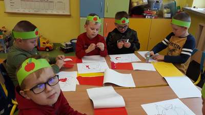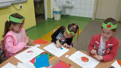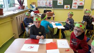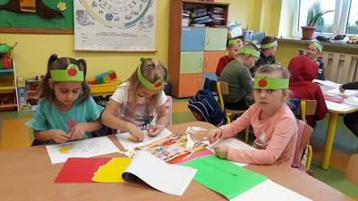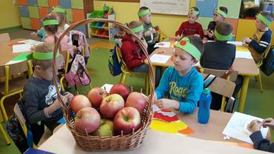 W zerówce Święto Jabłka obchodziliśmy 30 września. Najpierw odbyła się pogadanka na temat zdrowotnych właściwości jabłek. Przedszkolaki opisywały wygląd jabłka, poznały etapy jego rozwoju oraz wymieniły potrawy, które robi się z jabłek. Była również okazja do wykonania zadań matematycznych, typu: przeliczanie jabłek, porównywanie wielkości. Następnie zrobiliśmy sobie jabłuszkowe ucztowanie i wykonaliśmy prace plastyczne. Taki tematyczny dzień w przedszkolu z pewnością zachęci dzieci do sięgania po owoce i posłuży promocji zdrowego stylu życia.