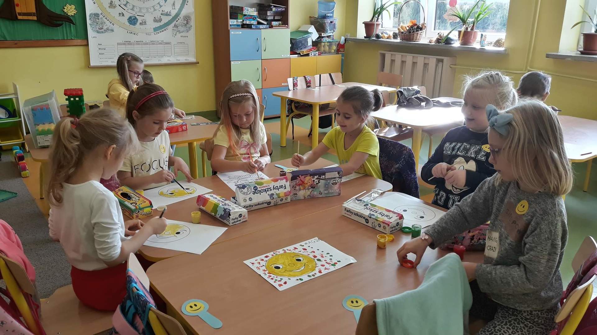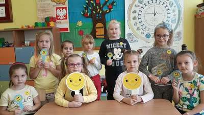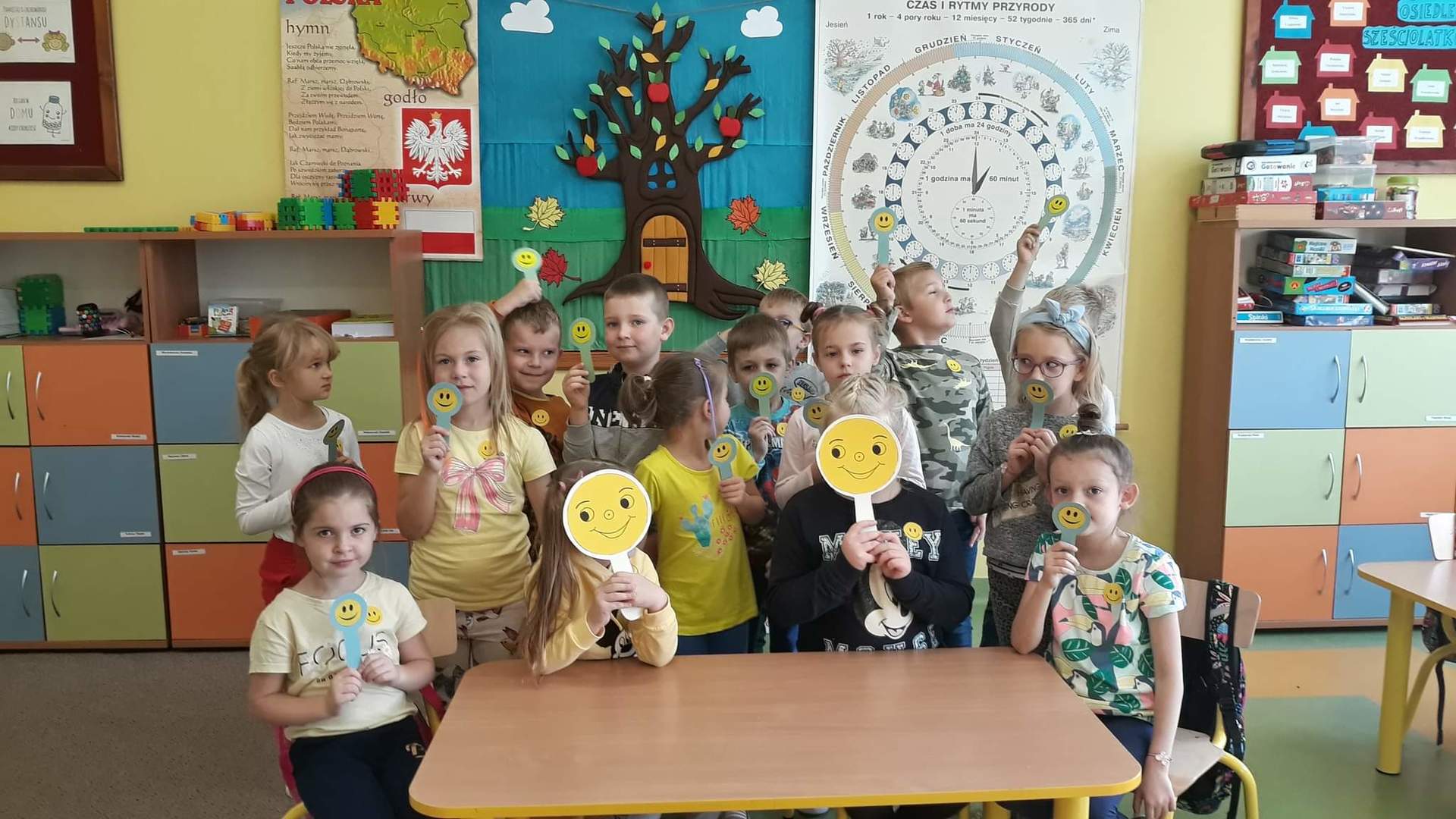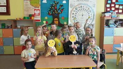 6 października w "zerówce" było bardzo radośnie i wesoło, a to za sprawą Światowego Dnia Uśmiechu. Na dzieci czekało w tym dniu wiele zabaw, do których "biletem wstępu" był uśmiech od ucha do ucha:) Na początku dzieci zostały poproszone o przywitanie się uśmiechem. Następnie wspólnie śpiewały i ilustrowały ruchem znane piosenki. Najciekawszym i najbardziej zabawnym elementem dnia okazał się krótki film o śmiesznych zwierzętach (kotach), który rozbawił dzieci do łez. W tym dniu wszyscy mieliśmy dobry humor, ponieważ śmiech poprawia nastrój. Ponadto ma pozytywny wpływ na nasze zdrowie, dlatego Światowy Dzień Uśmiechu obowiązkowo powinniśmy obchodzić przez cały rok!