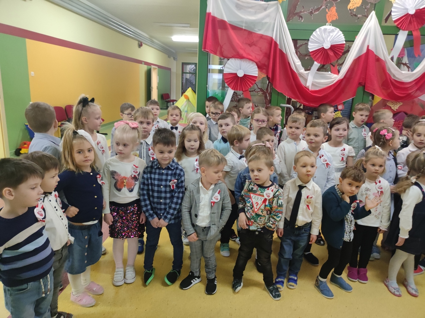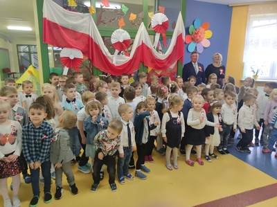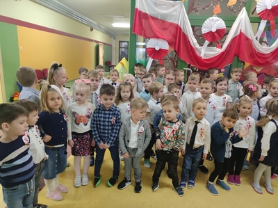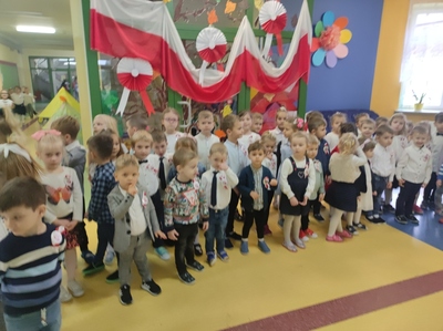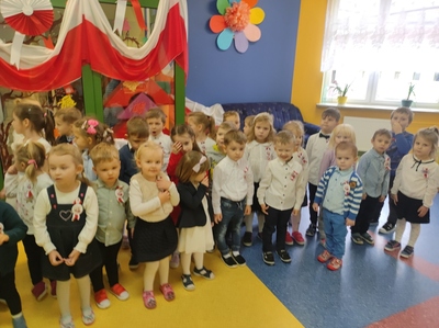 W dniu 10 listopada obchodziliśmy w naszym przedszkolu Święto Niepodległości 🇵🇱 . Z tej okazji wszystkie dzieci przyszły ubrane na galowo i uroczyście świętowały dla Nas - Polaków dzień.