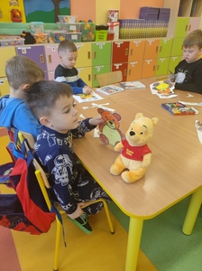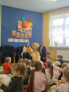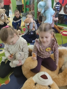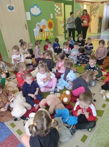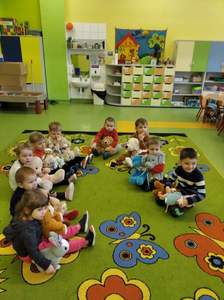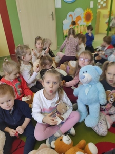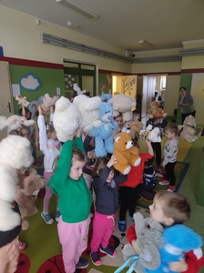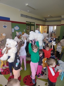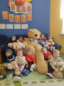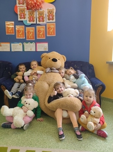 25 listopada swoje święto odchodzi najmilsza zabawka, najmilszy przyjaciel dzieci - Pluszowy Miś. Każde dziecko przyszło do przedszkola ze swoim "milutkim przyjacielem". Można było zobaczyć misie małe, średnie, duże, brązowe, różowe, białe, niebieskie... Wszystkie były śliczne i wyjątkowe. Mieliśmy też wyjątkowych gości, Panią Dyrektor i Pana Dyrektora. Pani Dyrektor przeczytała dzieciom bajkę o Misiu Szarusiu. Na koniec przedszkolaki otrzymały słodką niespodziankę w postaci Misia Lubisia:)