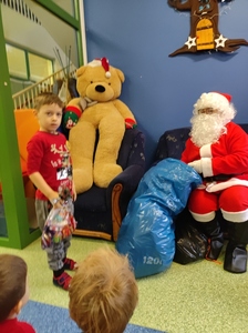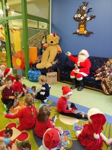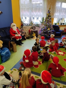 We wtorek 6 grudnia grupę Słoneczek, Misiów i Sówek w przedszkolu odwiedził Mikołaj. Spotkanie przebiegało w bardzo radosnej i przyjaznej atmosferze. Przedszkolaki śpiewały i mówiły wierszki Mikołajowi.