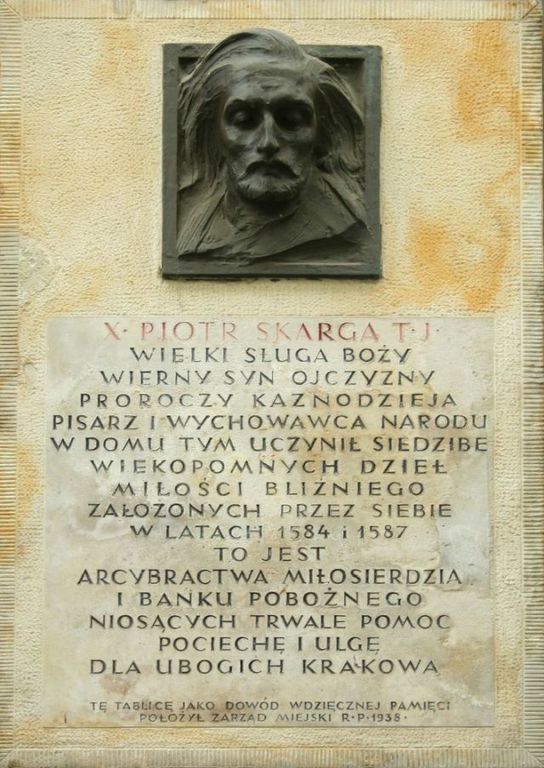 W 1936 roku obchodzono jubileusz czterechsetlecia urodzin Skargi. W Warszawie, po uroczystej Mszy św. Na Placu Zamkowym, nastąpiło odsłonięcie spiżowej tablicy, wmurowanej w ścianę zamku królewskiego. Na tablicy wyryto słowa Skargi: „Upominałem, aby obie matki swoje: Kościół Boży i Ojczyznę, w jednym końcu złączone, wiernie i uprzejmie miłowali”.