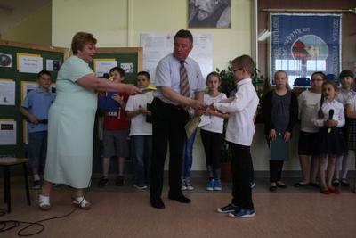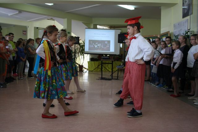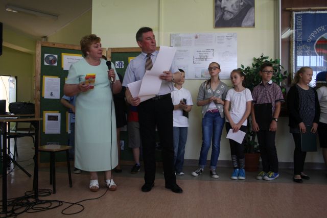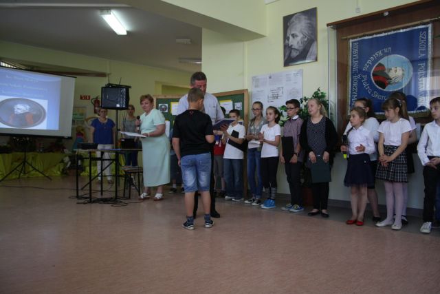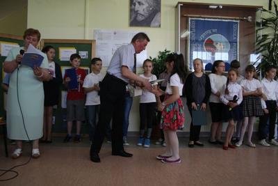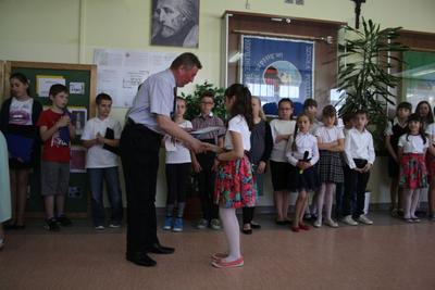 Na zakończenie uroczystości zabrał głos Pan Dyrektor Jan Kierzkowski, który podziękował wszystkim za występy i przygotowanie apelu. Ponadto, wręczył dyplomy i nagrody książkowe uczniom klas II-III za konkurs czytelniczy pt. „Mój dzienniczek lektur”.