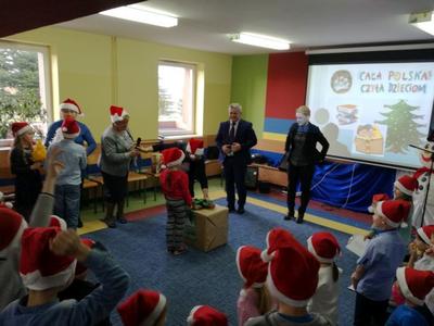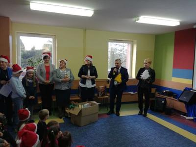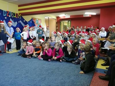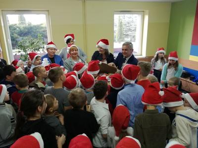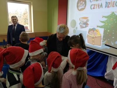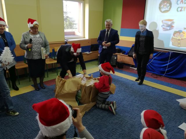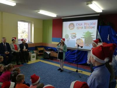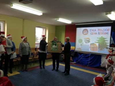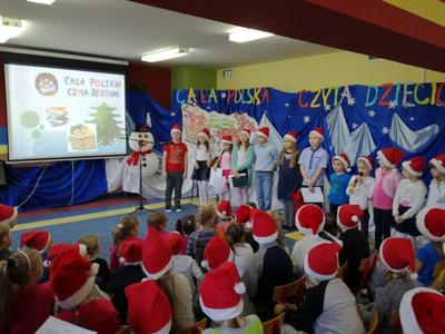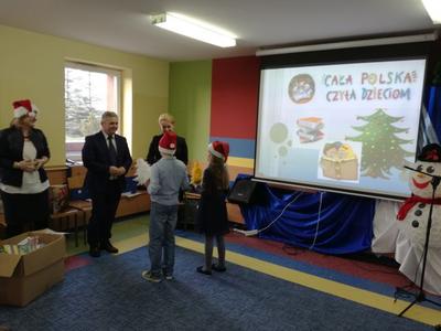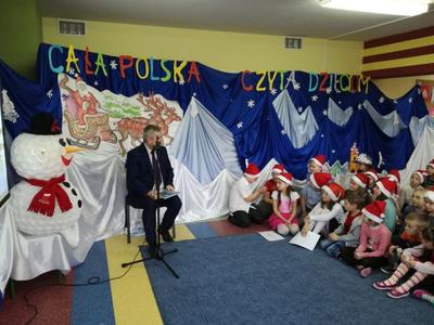 W uroczystym Dniu Św. Mikołaja odbyła się w naszej szkole akcja Cała Polska Czyta Dzieciom pod hasłem ,,Mikołajkowe opowieści”. Wtedy to uczniowie klas 0 – III z wychowawcami zgromadzili się w mikołajkowych czapkach w świetlicy szkolnej. Na to spotkanie czytelnicze przybyli również zaproszeni goście: przedstawiciele Podlaskiego Oddziału Regionalnego ARiMR, pan Wójt, kierowniczka Biblioteki Publicznej w Kobylinie - Borzymach, dyrekcja szkoły , pani pedagog i rodzice. Na początku spotkania przeczytano legendę o Św. Mikołaju, zaprezentowano inscenizację, wiersze i piosenki. Punktem kulminacyjnym było wysłuchanie opowieści mikołajkowej pt: ,,Fałszywy Święty Mikołaj” czytanej przez wicedyrektora ARiMR Grzegorza Chełmińskiego, gdzie jednocześnie była wyświetlana prezentacja tekstu książki z bogatą szatą graficzną. Zaproszeni goście złożyli życzenia dzieciom. Państwo z Oddziału AR i MR przekazali w darze do biblioteki książki dla najmłodszych. Obdarowali dzieci słodyczami i prezentami. Na koniec Pani wicedyrektor podziękowała wszystkim za uczestnictwo w imprezie. Dzieci wręczyły zaproszonym gościom upominki bożonarodzeniowe.