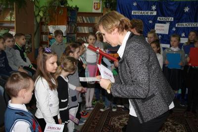 Uczniowie pierwszej klasy zostali przyjęci w poczet czytelników biblioteki szkolnej  podczas uroczystości przygotowanej  przez uczniów klas starszych. Zaprezentowali montaż słowno-muzyczny wprowadzający w świat książek. Na tę uroczystość zaproszono uczniów klas młodszych wraz z wychowawcami, rodziców i dyrekcję szkoły.  Pierwszoklasiści złożyli przyrzeczenie i nastąpiło dokonanie aktu pasowania na czytelnika. Wszyscy jednogłośnie obiecali, że będą czytać książki. Wcześniej zapoznali się z regulaminem biblioteki, zasadami poszanowania książek, ze zbiorami gromadzonymi w bibliotece oraz nabyli umiejętność wypożyczania książek. Na pamiątkę tego wydarzenia  każdy uczeń I klasy otrzymał okolicznościowy dyplom i zakładkę do książki. Spotkanie przebiegło w radosnej i przyjaznej atmosferze. Zarówno występującym jak i słuchaczom przyniosło wiele satysfakcji i zadowolenia.