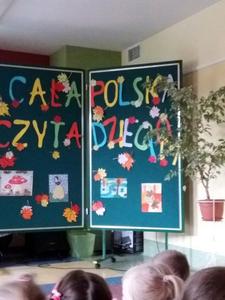 - Inauguracja Akcji Cała Polska Czyta Dzieciom – uczniowie klas 0-IV wraz z przedszkolakami i wychowawcami zgromadzili się w świetlicy szkolnej. W nastrój październikowego czasu z książką wprowadziło wspólne zaśpiewanie piosenki ,,Cała Polska Czyta Dzieciom”. Następnie obejrzano inscenizację "Bajkowy sen Grzesia, który nie lubił czytać książek”. Dzieci na podstawie zaprezentowanych postaci bajkowych poprawnie wymieniały tytuły baśni. Wysłuchano też jednej z baśni braci Grimm pt: "Królewna Śnieżka” wymienionej w tym przedstawieniu, która była czytana przez starszych kolegów.