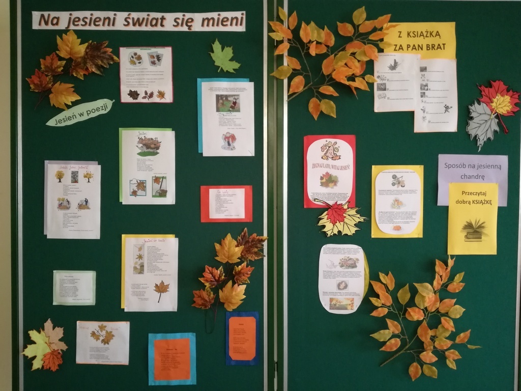 - gazetki na korytarzu szkolnym "Na jesieni świat się mieni”,