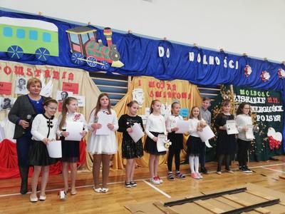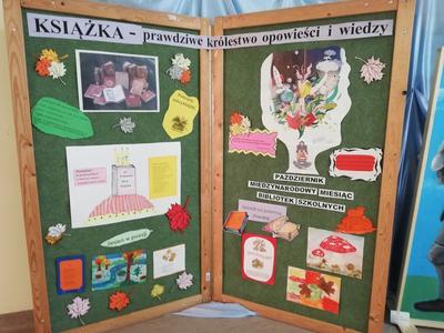W ramach Międzynarodowego Miesiąca Bibliotek Szkolnych przygotowano cykl wydarzeń pod wspólnym tytułem ,, Czytaj z nami". Celem tych działań było propagowanie czytelnictwa. Przygotowano nową gazetkę na korytarzu szkolnym pt. ,,Czytaj z zachwytem, ucz się błyskawicznie".