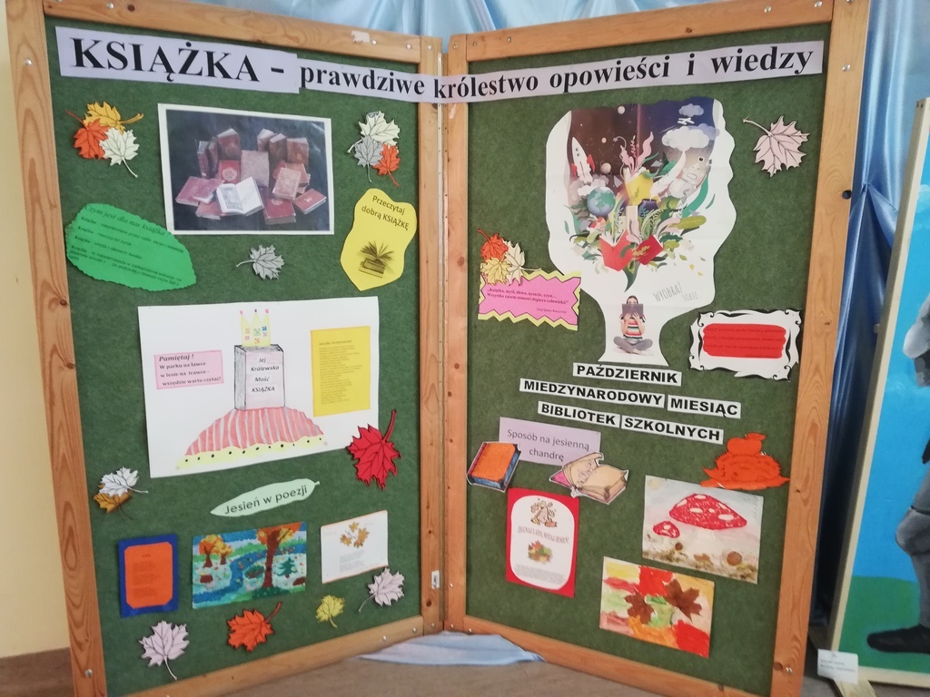 Ponadto został ogłoszony szkolny konkurs czytelniczy dla klas II- IV ,,Czy znasz bajki  Charles'a Perrault?". Głośne czytanie różnych utworów literackich odbywa się czasem na przerwach. Na koniec października zakończył się Konkurs Plastyczny Promujący Bibliotekę i Czytelnictwo. Wystawa prac pokonkursowych została zaprezentowana na gazetce na korytarzu szkolnym.