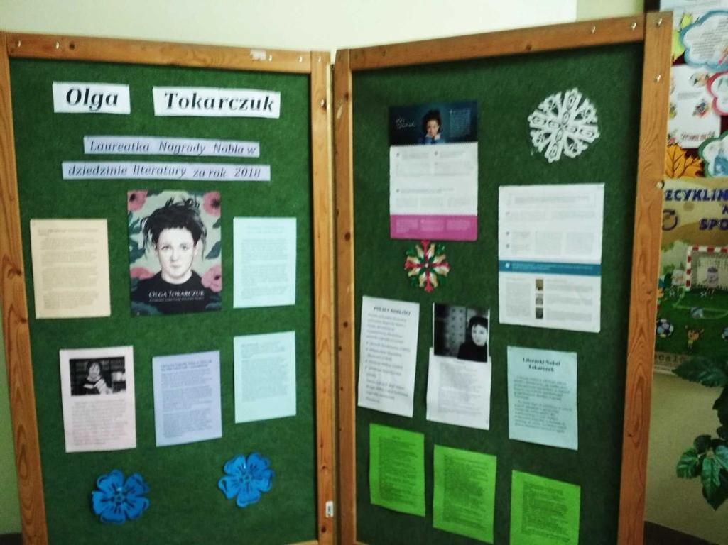 Olga Tokarczuk-laureatka Nagrody Nobla w dziedzinie literatury za rok 2018 (gazetka na korytarzu szkolnym)