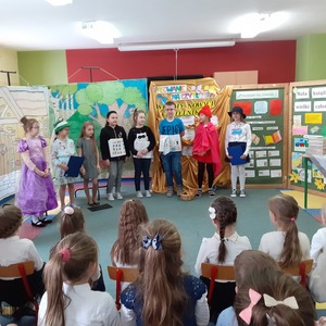 Występy uczniów nagrodzono gromkimi oklaskami. Uczniowie pierwszej klasy oficjalnie stali się czytelnikami biblioteki szkolnej, w której sami mogą odkrywać ZACZAROWNY ŚWIAT BAJEK.