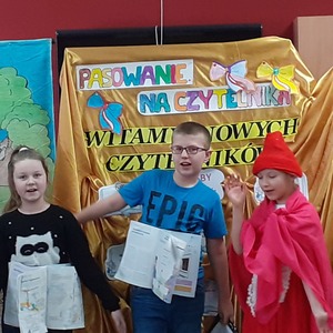 W naszej Szkole Podstawowej 10 lutego 2021 roku odbyło się pasowanie na czytelnika. Impreza ta wpisała się na stałe do kalendarza uroczystości szkolnych. Spotkanie przyjęcia pierwszoklasistów w poczet czytelników było wyjątkowo uroczyste . Uczestniczyli w nim zaproszeni goście: dyrekcja szkoły, wychowawcy, nauczyciele oraz uczniowie klas I-III. Specjalnie na tę okazję przygotowano inscenizację pt. ,, Dziwna przygoda w bibliotece" połączoną ze śpiewem piosenek o tematyce czytelniczej i zimowej. Po pasowaniu na czytelnika każdy uczeń otrzymał w nagrodę wyprawkę czytelniczą ufundowaną przez Instytut Książki w związku z kampanią społeczną ,,Mała książka-wielki człowiek" promującą czytelnictwo i zalety wspólnego rodzinnego czytania dla dziecka od najmłodszych lat.