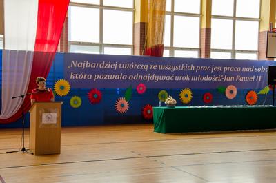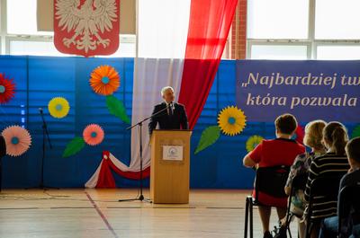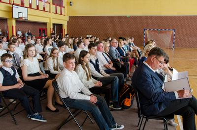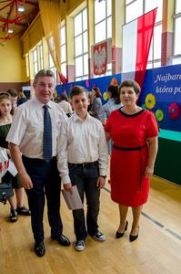 Na podsumowaniu konkursów obecni byli Wojewoda Podlaski Pan Bohdan Paszkowski oraz Podlaska Kurator Oświaty Pani Beata Pietruszka. Naszemu laureatowi towarzyszli Pan Dyrektor, Pani Sylwia Bućko oraz mama Piotrka, Pani Anna.